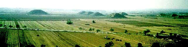 As Pirâmides de Quin Ling Shan na região de Xi’an, República da China, – foto acima mostra um plano geral – foram descobertas por dois exploradores australianos em 1912. O complexo arquitetônico possui 100 pirâmides espalhadas por 2.000 quilômetros quadrados, com idade estimada em 5.000 anos.