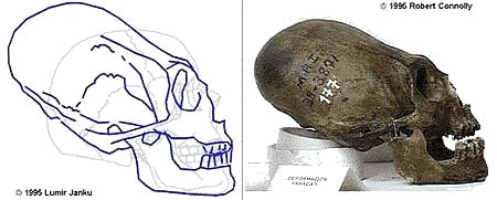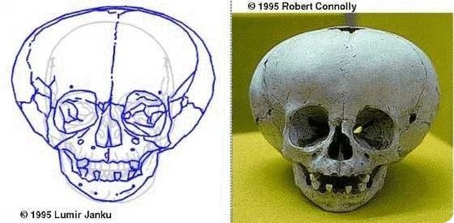 As três fotos de crânios estão no CD-ROM ‘The Search For Ancient Wisdom’, de Robert Connolly, 1995. A idade e origem dos crânios ainda é desconhecida, mas as deformidades que apresentam são diferentes das formas humanas em todas as eras, sugerindo que tenham origem extraterrena.