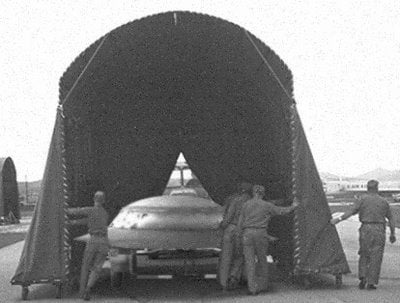 Ainda de acordo com rumores, o presidente americano Dwight D. Eisenhower foi levado à Base Aérea de Edwards, em Muroc Dry Lake, Califórnia, em 20 de fevereiro de 1954, para se encontrar com extraterrestres e examinar a espaçonave deles que estava sendo estudada lá.