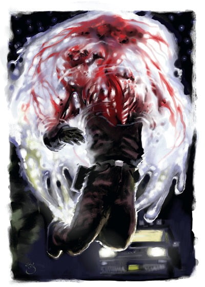 A criatura voltou na noite seguinte e então centenas de cidadãos de Crawfordsville viram aquelas barbatanas baterem violentamente e aquele ponto vermelho flamejante. Ela "se contorcia, como se agonizasse" e emitia um "ruído chiado e lamuriento", pairando a 90m no ar. A certa altura deu um rasante sobre os espectadores, que juraram ter sentido seu "hálito quente".