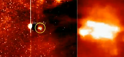 De acordo com um vídeo no YouTube, um OVNI camuflado, próximo a Mercúrio, teria sido revelado pela lentes da sonda SECCHI HI1-A após uma projeção solar. Embora as imagens sejam surpreendentes, um artigo da Wikipédia explica o fenômeno:
