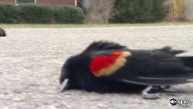 De acordo com a rede de notícias norte-americana ABC, os moradores da pequena cidade do estado do Arkansas afirmam que os animais começaram a cair do céu poucas horas após a meia-noite, quando deu início as festividades pela chegada de 2012.
