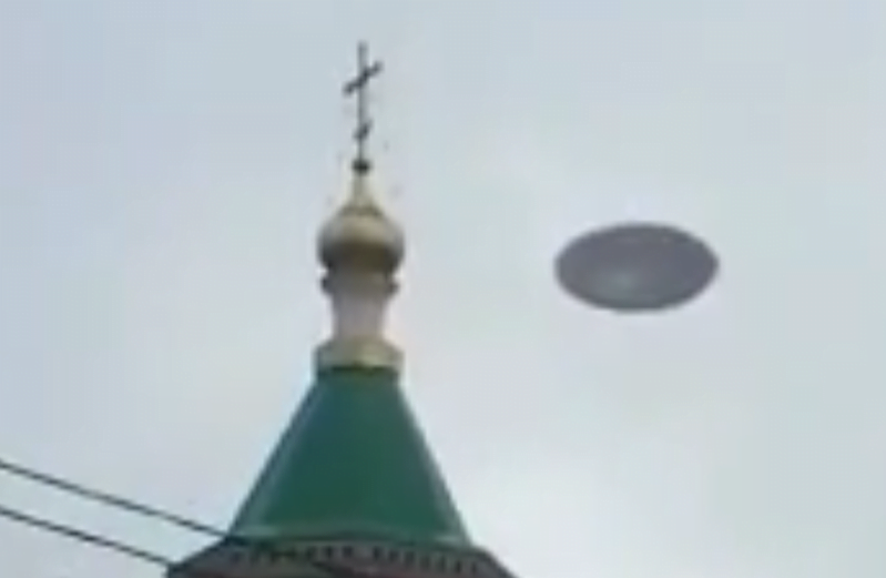 Neste vídeo, divulgado recentemente no YouTube, alguns rapazes estão olhando para um OVNI que paira sobre uma igreja local na cidade de Donetsk. Alguns peritos da ufologia americana chegaram a dar uma credibilidade de 100% ao vídeo por algumas razões: