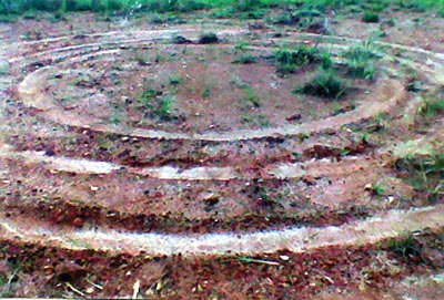 Os círculos, mostrados na imagem acima, surgiram em um platô ao lado do Morro Serrote, acima do motel existente na estrada Caeté-Sabará, alguns dias antes do Natal.