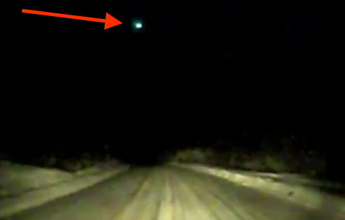 Um motorista na Colúmbia Britânica registrou através de uma câmera fixada em seu veículo em condução quando um orb incandescente gigante sobrevoou a estrada e depois desapareceu.