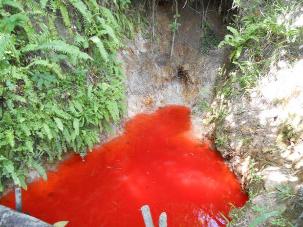 Desde segunda-feira (16), de uma fonte no sítio Chã de Alegria, no distrito de Tejucupapo, no município de Goiana, Mata Norte de Pernambuco, está deixando moradores da região intrigados. Por causa da cor semelhante à do sangue, muitos falam em milagres e pensam até em promover romarias ao local.