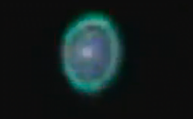 "Este orbe apareceu no sudeste da Flórida. Ele parece ter uma forma de disco voador, mas é difícil se concentrar nele devido à intensa luz que emitia. Eu estava usando foco automático e não permitia visualizar detalhes mais mais decentes."