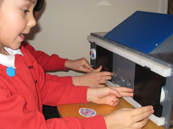 Os pesquisadores treinaram chimpanzés para resolver os estágios do quebra-cabeça – que envolveu portas de abertura, pressionar botões e girar um botão – para que eles pudessem mostrar a outros chimpanzés, mas isso não parece ajudá-los.