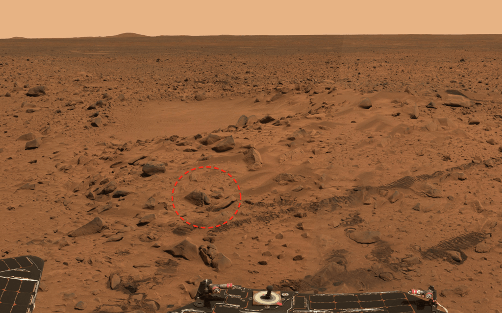 Em uma das fotos recentes divulgadas de Marte é possível ver algo na superfície do planeta vermelho.