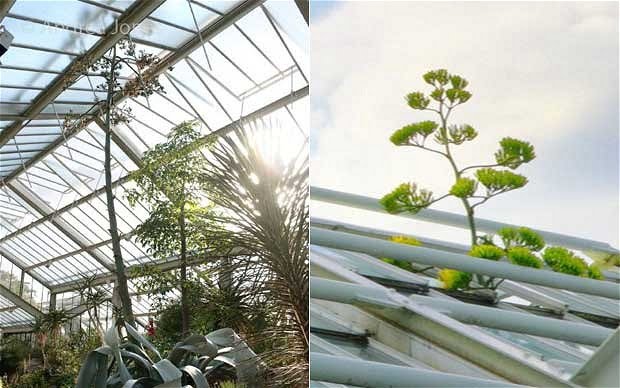 As plantas cresceram tão altas e num espaço tão pequeno de tempo que parte do telhado teve de ser removido para acomodar-la.