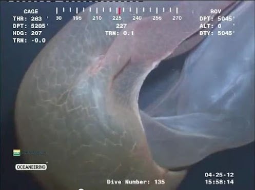 Filmado por uma equipe de perfuração submarina, o registro deixou muitas pessoas intrigadas com a criatura flutuante, com sugestões que poderiam ser um monstro do mar profundo ou mesmo um saco plástico.