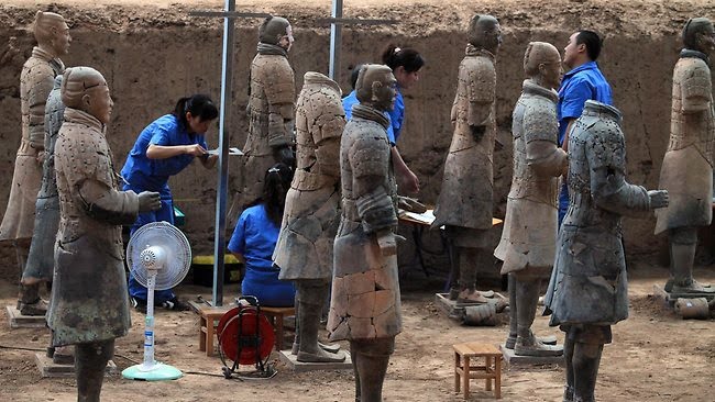 Arqueólogos foram meticulosamente escavando as figuras que foram criadas há séculos para guardar o túmulo do primeiro imperador da China.