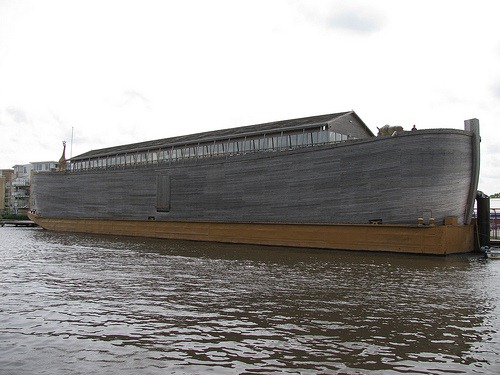 Apelidado de "Johan Ark", o barco longo de 136 metrios de madeira pesa 3.000 toneladas e pode transportar 1.500 pessoas. Huibers está esperando para navegar sua arca até o Tâmisa, como parte das comemorações em torno do Jogos Olímpicos de Londres.