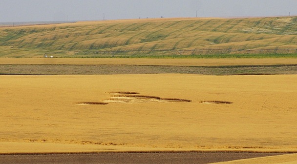 Círculos misteriosos apareceram em um campo de trigo próximo a Washington mas os fazendeiros da área que se preparam para a colheita do verão mais divertida do que alarmante.