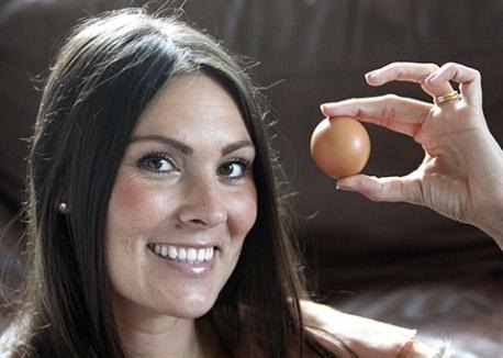 Greenhill. 32 anos, ficou surpresa ao descobrir um ovo perfeitamente esférico em caixa padrão de uma dúzia. Ela diz que estava prestes a cozinhar um omelete para seu filho de 14 anos de idade, quando se deparou com o espécime raro.