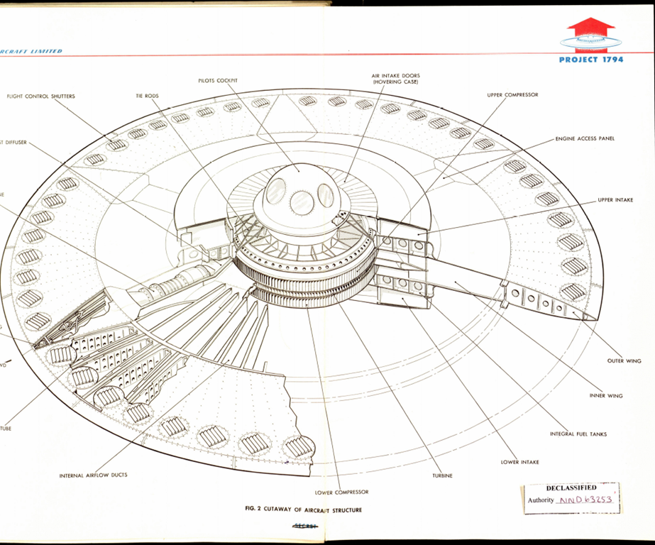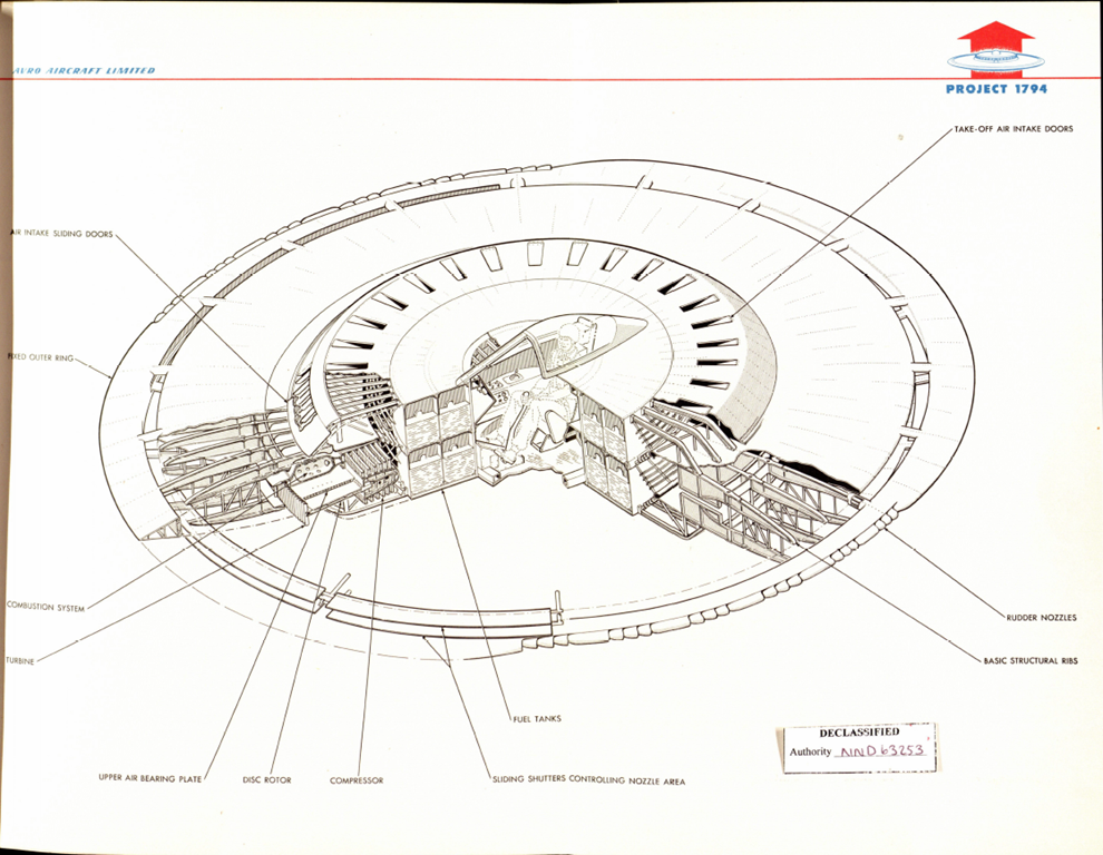 De acordo com os documentos, a Força Aérea chegou a contratar uma empresa canadense, Avro Aircraft Limited, em Ontário, para construir uma nave em forma de disco, o “Projeto 1794”.