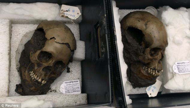 A nova descoberta de 50 crânios em uma única pedra sacrificial indica uma cerimônia de uma escala sem precedentes com cinco dos crânios encontrados enterrados sob uma pedra e outros 45 empilhados em cima.