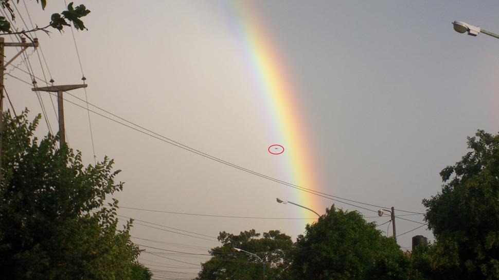 Moradores relataram estranhos objetos escuros ao longo de um arco-íris nos céus de Tucuma, numa província do noroeste argentino, semanas atrás.