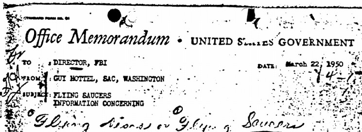 Em 22 de março de 1950, o agente especial Guy Hottel enviou um memorando de uma página para o diretor do FBI J. Edgar Hoover.