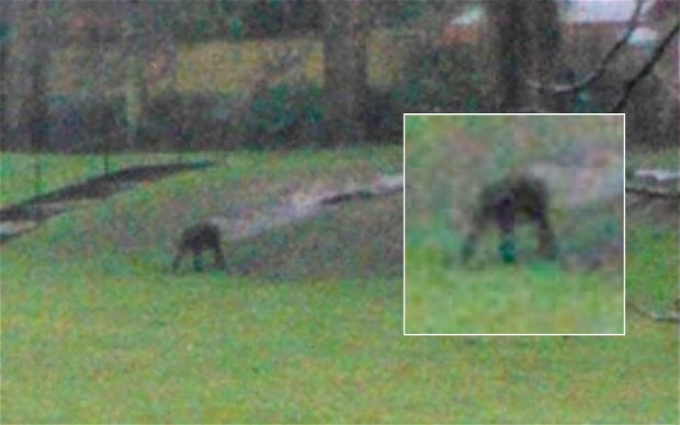 A imagem mostra uma criatura escura, com quatro pernas fazendo o seu caminho pelo parque, em Dorchester, Dorset.