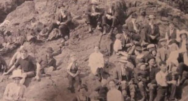 O que leva a crer que o sujeito viajou no tempo? A camiseta, e a bermuda? Está claro que parecem estar em uma praia…em 1917 era assim, existiam aqueles mais austeros e aqueles mais esportivos tb…e este rapaz estava vestido praticamente igual ao senhor de bigode ao seu lado, bem como o garotinho tb.