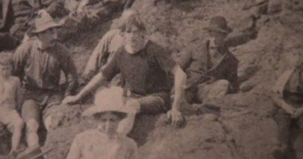 Se formos seguir a história da moda (eu estudo) com toda certeza esse rapaz não esta de acordo com as roupas de 1917, pois vemos que ele esta com uma camiseta e bermuda, nunca que naquela época os homens usariam uma roupa assim.Estranho e curioso.