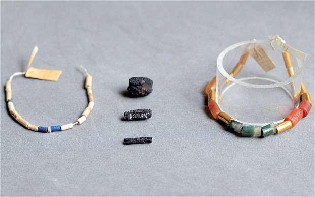 Um conjunto de pérolas antigas funerárias, descobertos no Egito, são feitas a partir de materiais encontrados em um meteorito.