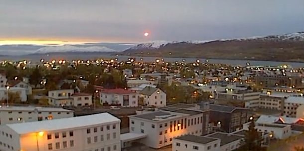 O usuário Bjarki Mikkelsen do YouTube postou um vídeo em 01 de outubro de 2013, que mostra uma bola de luz no céu de Akureyri, Islândia. O vídeo mostra que esta estranha luz teria pousado em um bairro populoso.