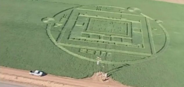 Composta por um grande anel externo, vários círculos menores e um complexo padrão de quadrados e retângulos, o design impressionante tem quase um hectare de diâmetro.