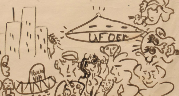 Um desenho de OVNI feito por John Lennon em 1974 foi leiloado na semana passada e foi pago quase 10 vezes mais do que o esperado. O desenho de Lennon se encaixa na descrição de um OVNI e ele diz que viu em Nova York com sua então namorada May Pang, naquele mesmo ano.