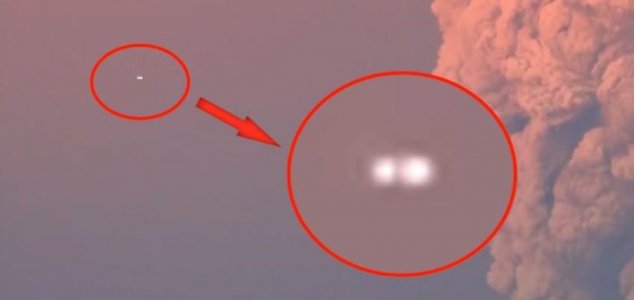 Na tentativa de capturar imagens do espetáculo, uma mulher também conseguiu registrar algo inesperado pairando no céu nas imediações da nuvem de cinzas – uma aeronave não identificada com duas luzes piscando que então desapareceu em uma fração de segundo, sem qualquer explicação.