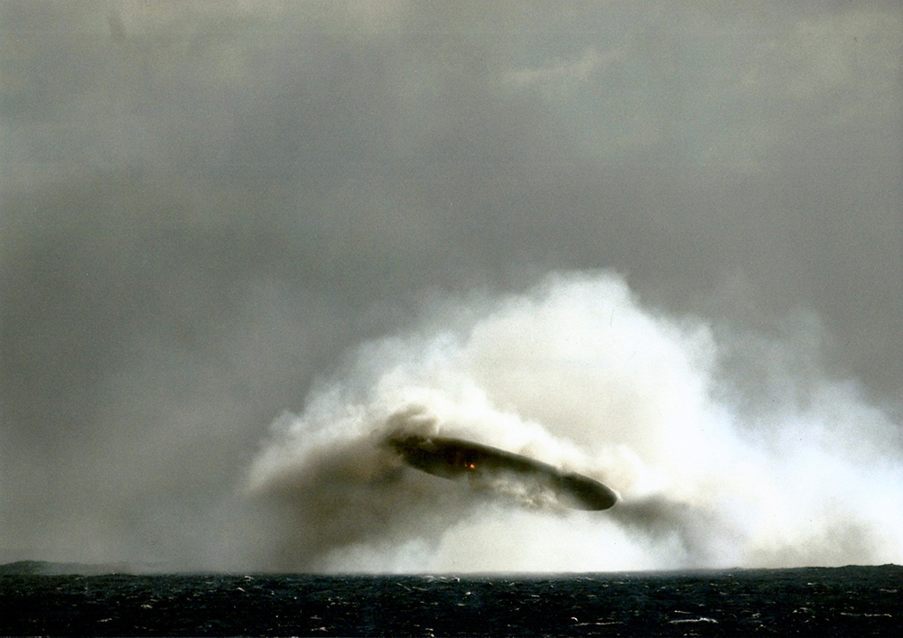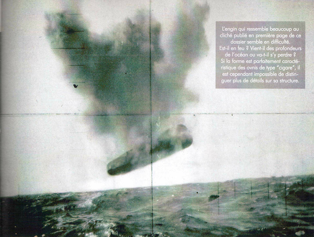 As fotografias granuladas mostram um objeto triangular preto que voa oróximo a água e uma série de fotos que mostram um grande objeto em forma de charuto que parece cair no mar. As imagens foram supostamente enviadas para a revista paranormal francesa “Top Secet” por uma fonte anônima e sua origem ou autenticidade tem sido questionada.