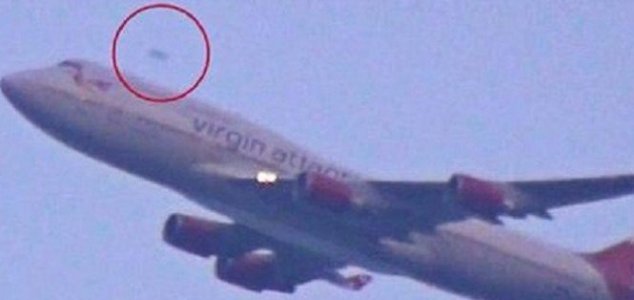Um vídeo publicado no YouTube mostra um estranho objeto voador passado acima de um grande avião enquanto ele decola de um aeroporto.