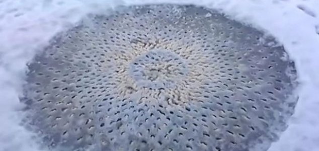 Dois amigos em Utah, nos Estados Unidos, dizem ter gravado imagens de um círculo misterioso repleto de ovos em um lago congelado.