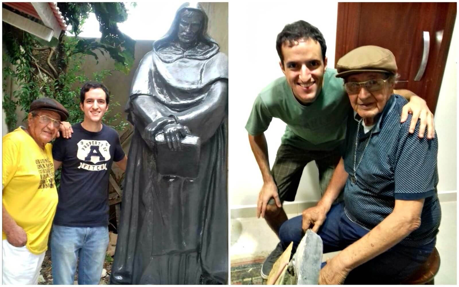 “Ele se destacou. É muito inteligente, superdotado. Ele viu meu trabalho, gostou e me deu um livro sobre o Giordano. A estátua ficou no fundo da minha casa, Bruno veio buscar em uma caminhonete. Depois fui chamado para terminar, para fixar onde deveria ficar”, conta.
