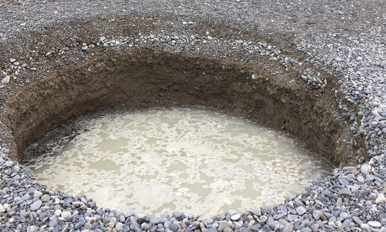 Acontece que tais furos são causados ??por camadas de mudança de areia devido ao peso dos seixos (pedras de pequenas dimensões).