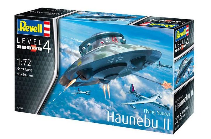 Apelidado de “Haunebu II”, o modelo de disco voador, que é retratado na caixa atirando em aeronaves aliadas com suas metralhadoras embutidas, é descrito como sendo o primeiro objeto feito pelo homem no espaço com uma velocidade máxima de 6.000 quilômetros por hora.