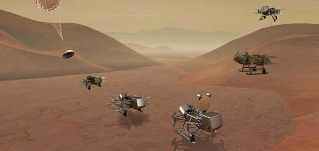 O próprio módulo de aterrissagem se parece muito com um drone com oito rotores que permitirá não apenas pousar na superfície de Titã, mas também ‘pular’ entre as áreas de interesse uma vez a cada 16 dias.