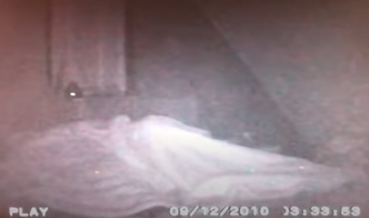 O sinistro incidente foi capturado em uma câmera infravermelha, que foi instalada depois que ela reclamou com o marido sobre ter experimentado ” duas experiências de abdução no espaço de uma semana”.