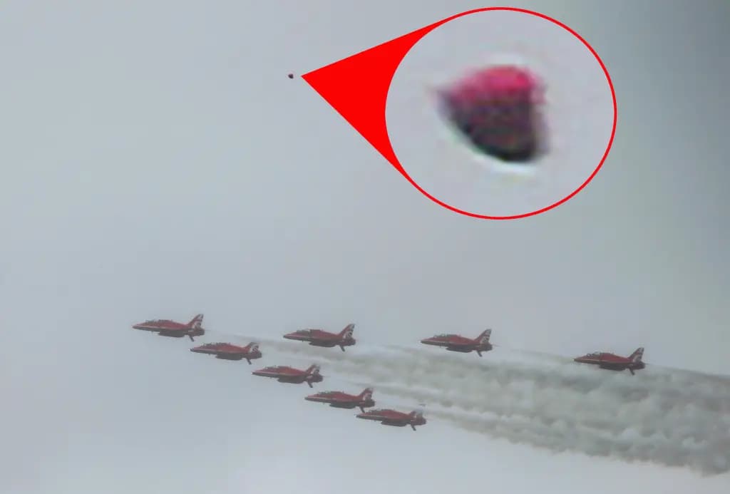 A coroação do Rei Charles III foi verdadeiramente fora deste mundo. Um fotógrafo que registrava o evento histórico afirma ter capturado imagens de um OVNI que foi avistado ao fundo dos aviões da Força Aérea Real, os Red Arrows, durante um sobrevoo em Londres nublada, de acordo com o Mirror.