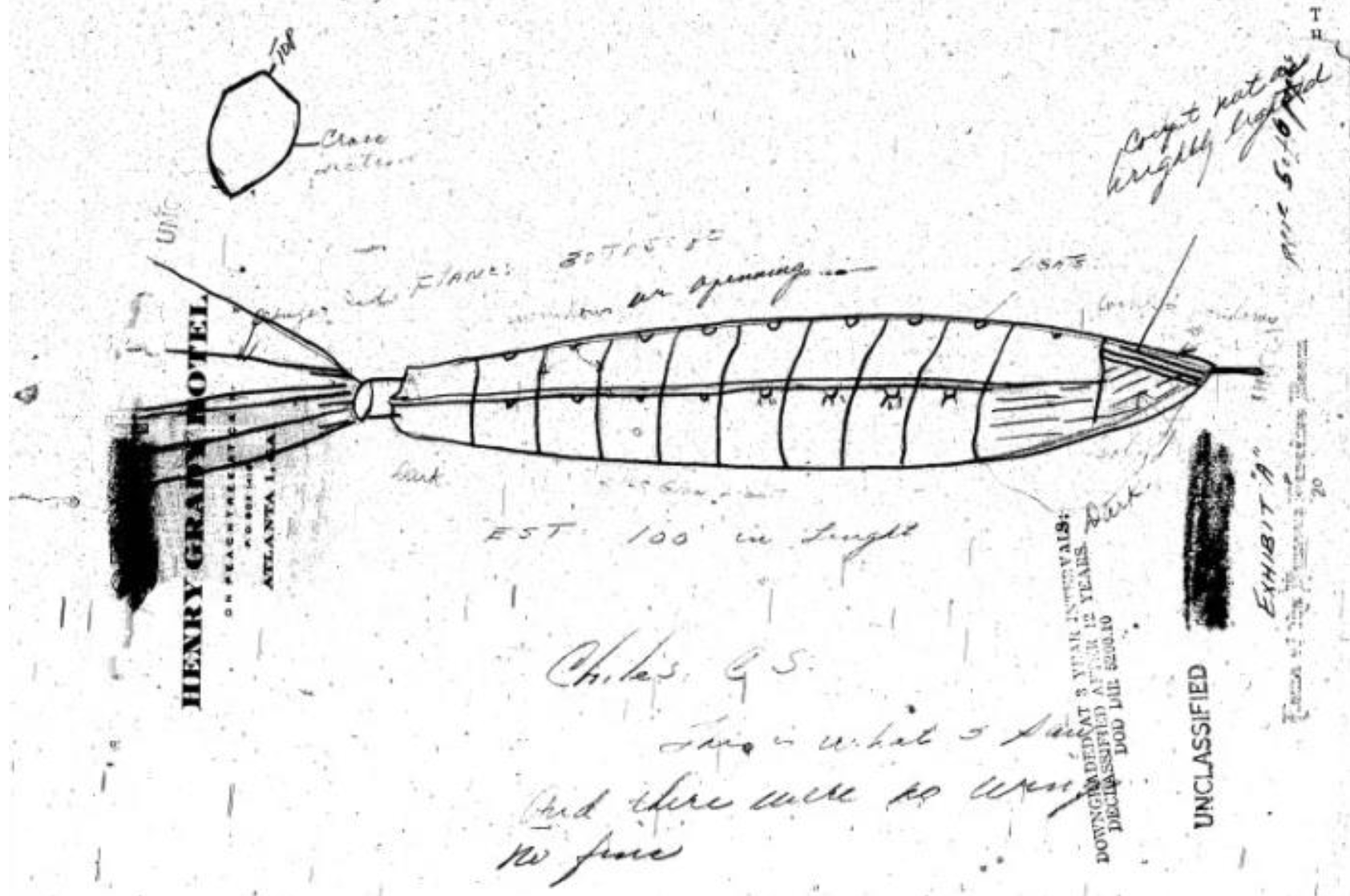 “Os dois pilotos afirmaram, sob interrogatório, que o objeto era definitivamente um dispositivo mecânico de algum tipo. Um rastro de exaustão 50 vezes o comprimento do objeto foi visto quando o objeto subiu em um banco de nuvens para o ESE. Nenhum som foi ouvido, nenhum odor detectado e o objeto não foi captado pelo radar.”