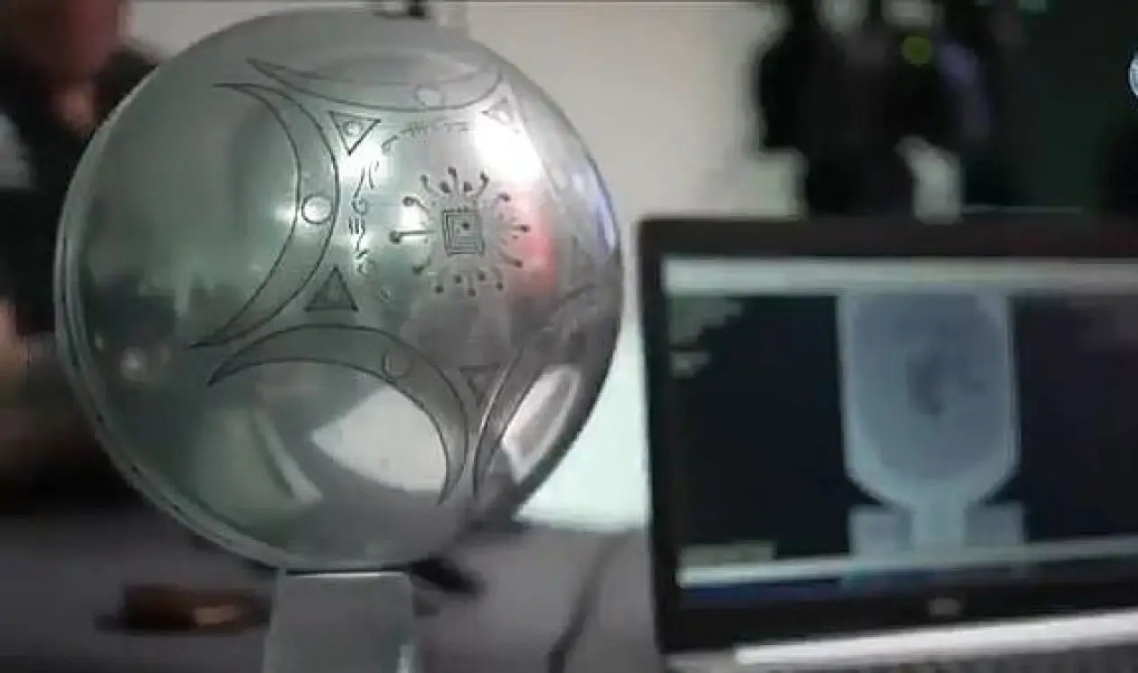 E se isso já não fosse intrigante o suficiente, a esfera ainda tem símbolos enigmáticos em sua superfície. Usando inteligência artificial, os pesquisadores tentaram decifrar a mensagem, que diz: