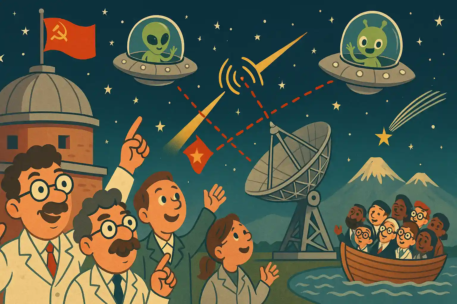 Assim, em 1964, um grupo de cientistas soviéticos se reuniu longe de Moscou, na Observatório Astrofísico de Byurakan, na Armênia. Esse encontro, discreto e estratégico, marcou a fundação do SETI soviético.
